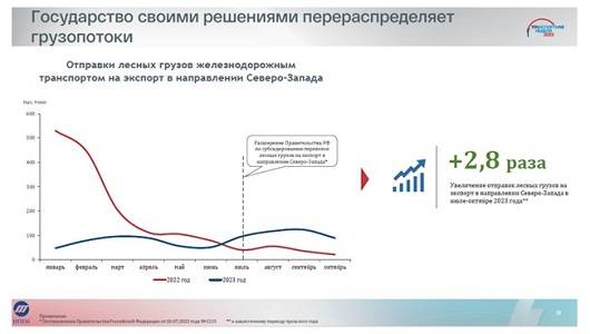 Говоря о роли государства в развитии отрасли, можно утверждать, что Правительство обладает инструментами, способными стимулировать перераспределение грузопотоков на сети железных дорог. Тем самым, разгружая ж/д инфраструктуру Восточного полигона. Как, например, решение Правительства о субсидировании перевозок лесных грузов на экспорт в направлении Северо-Запада. Так, за последние 4 месяца отправка лесных грузов в направлении Северо-Запада увеличилась в 2,8 раза. Государству целесообразно самостоятельно регулировать и стимулировать направление различных грузопотоков в тех направлениях, в которых грузы могут проехать.