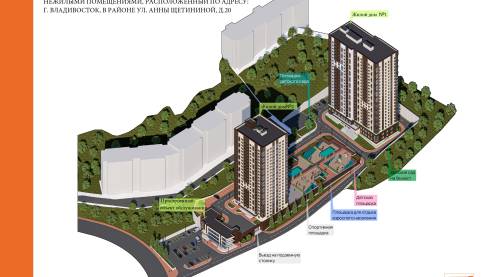 По данным из открытых источников, здесь будет возведен жилой комплекс из двух 27-этажных жилых домов с детским садом, детской и спортивной площадками, а также площадкой для взрослого населения и подземной парковкой.