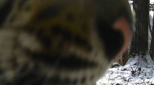 Следом подтянулась и «мамина радость». Работая вместе, пятнистые кошки «подправили» угол съёмки на свой вкус и скрылись.