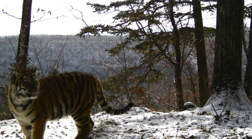 Но вот только любопытная самка амурского тигра не остановилась на фотосессии и решила «постичь азы» операторского искусства: приблизилась к скрытой лесной камере и начала её исследовать.