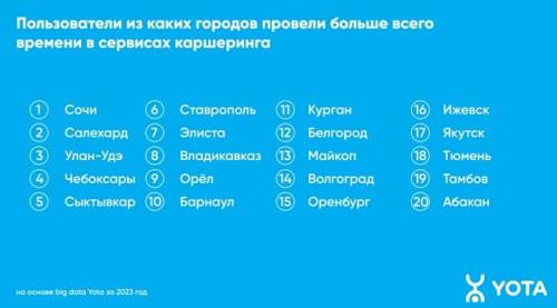 Аналитика Yota: россияне стали тратить на каршеринг в 1,5 раза больше времени