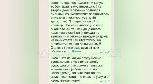 Женщина отмечает, что отдых в комплексе семьёй им обошелся почти в 10 000 (это вместе с рестораном) и почти столько же потратили на посещение врача, сдачу анализов и лечение.