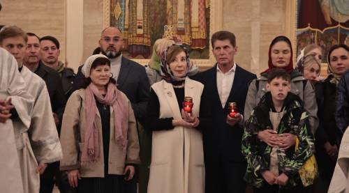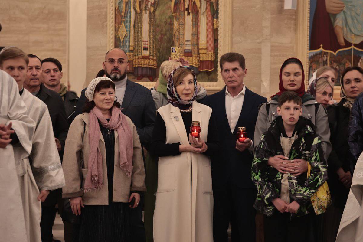 Вместе с жителями и гостями дальневосточной столицы в Великой Пасхальный вечерне, прошедшей в Спасо-Преображенском соборе, приняли участие губернатор Приморского края и глава города Константин Шестаков.