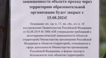 На воротах многих учебных учреждений появились объявления, в которых говорится о том, что сквозной проход по территории школы будет закрыт с 15 августа 2024 года.