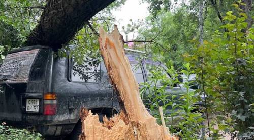 В ночь 18 июля во Владивостоке на Ильичева массивное дерево надломилось и упало на припаркованные автомобили, сообщают «Вести:Приморье».