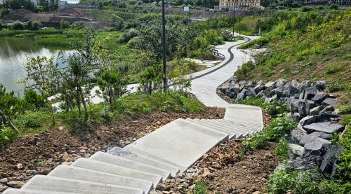 По задумке, вся композиция вокруг озера – это такой парк у воды. Задача в том, чтобы люди могли погулять, посмотреть на птиц.