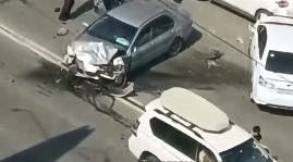 От мощного удара авто разворотило. Машины стоят поперек полосы движения.
