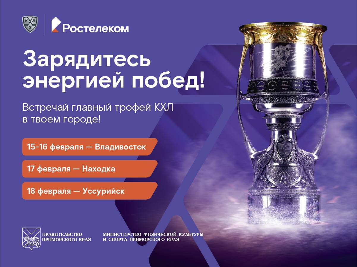 В этот же день в 14.00 в КСК «Фетисов Арена» состоится торжественная церемония открытия экспонирования главного трофея КХЛ. Свидетелями события смогут стать болельщики, которые посетят матч между командами «Адмирал» (Владивосток) и «Трактор» (Челябинск).