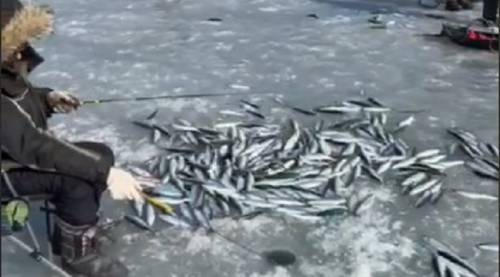 Любители подледной рыбалки отмечают, в районе полуострова Де-Фриз рыба буквально выпрыгивает из воды. Ее так много, что увозят ведрами. При этом самые стойкие утверждают, приезжают рано, уезжают поздно. Селедкой, вероятно, запаслись надолго.