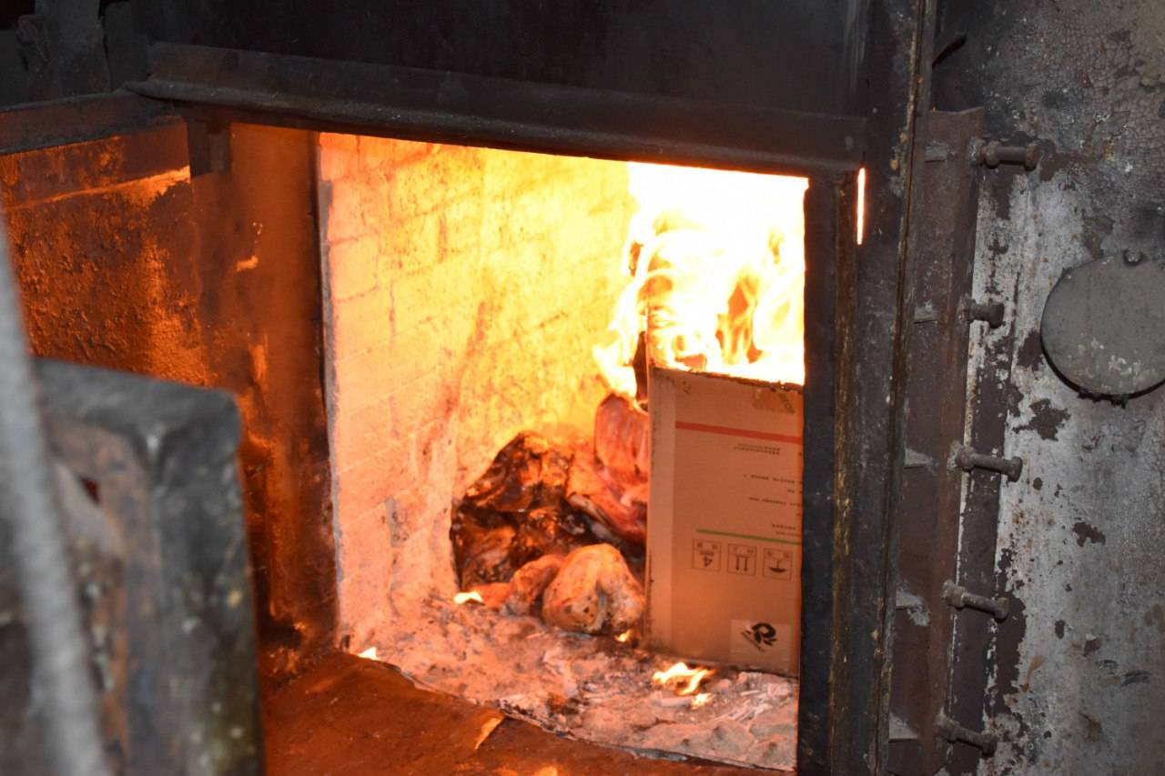 Пищевая продукция (11 наименований, в том числе мясные и рыбные консервы) общим весом 1,3 т была уничтожена путем сжигания, уточняет пресс-служба ведомства.