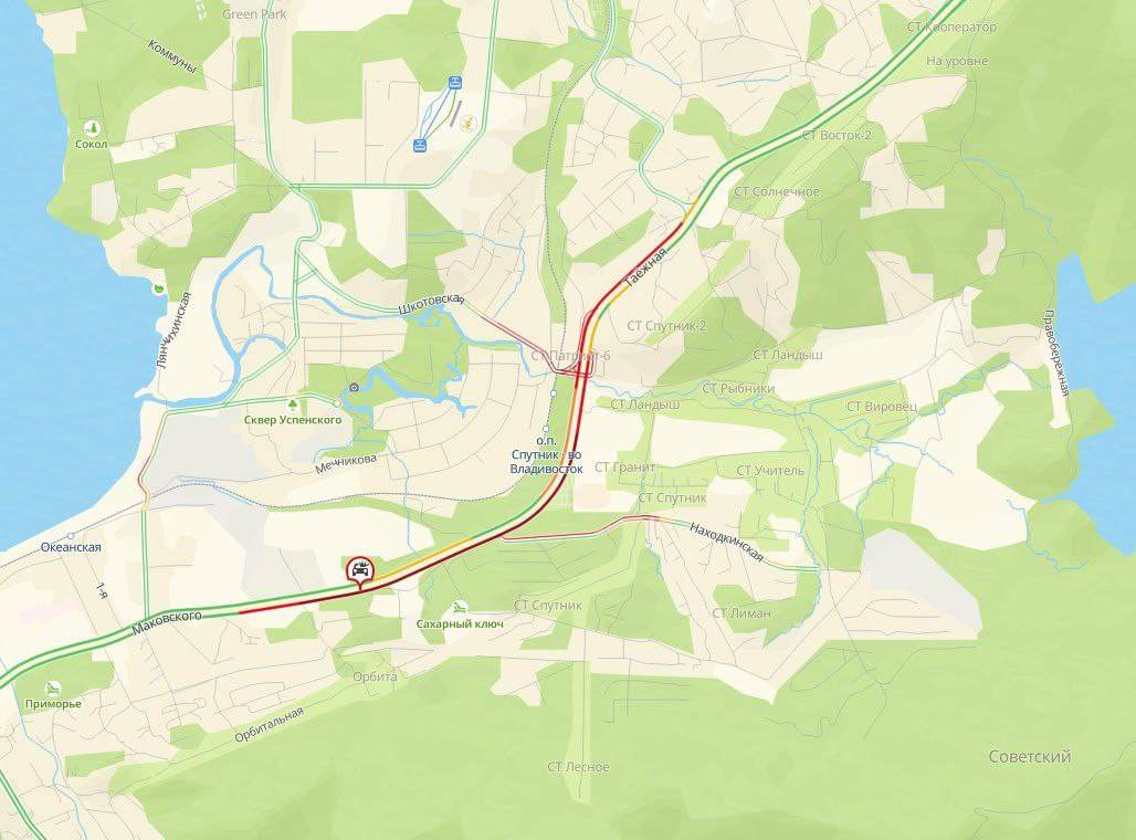 "Километровая пробка собралась на улице Маковского во Владивостоке. Движение затруднено сразу в обе стороны: по направлению к «Фетисов Арене» и в сторону Седанки", - предупреждают горожан в соцсетях.