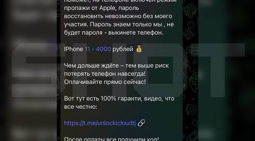 Странное началось после установки и просьбы менеджера выключить Face-ID. У Лили сразу заблочился айфон, на экране появилось сообщение, что телефон можно разблокировать только за четыре тысячи рублей. Мошенники стали написывать Лиле, что полицейские не помогут, нужно скорее отправлять деньги.