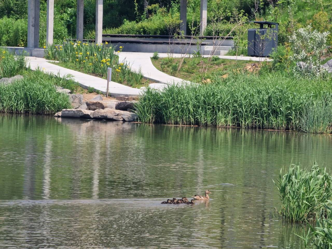 Насыпаны валы и посажены деревья. Теперь в парке слышны птицы, а не машины. Озеро отдано птицам, и смотреть, как мама-утка выгуливает утят, - одно удовольствие, переходящее в умиление.