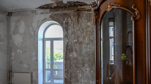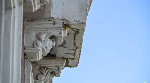 – Она мокрая, вода замерзала – стена отошла. Я не понимаю, что там, но пустота образовалась. Пять лет назад здесь отвалился кусок фасада.
