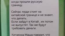 Как сообщают Telegram-каналы, российская структура, которая предположительно называется ООО «Золотой путь» задолжала китайской стороне более 100 тысяч рублей, из-за чего выехавшие в Суйфэньхэ российские туристы стали заложникам ситуации: китайская сторона не хотела им возвращать документы на возвращение в Россию, пока российская структура ей не выплатит долг.