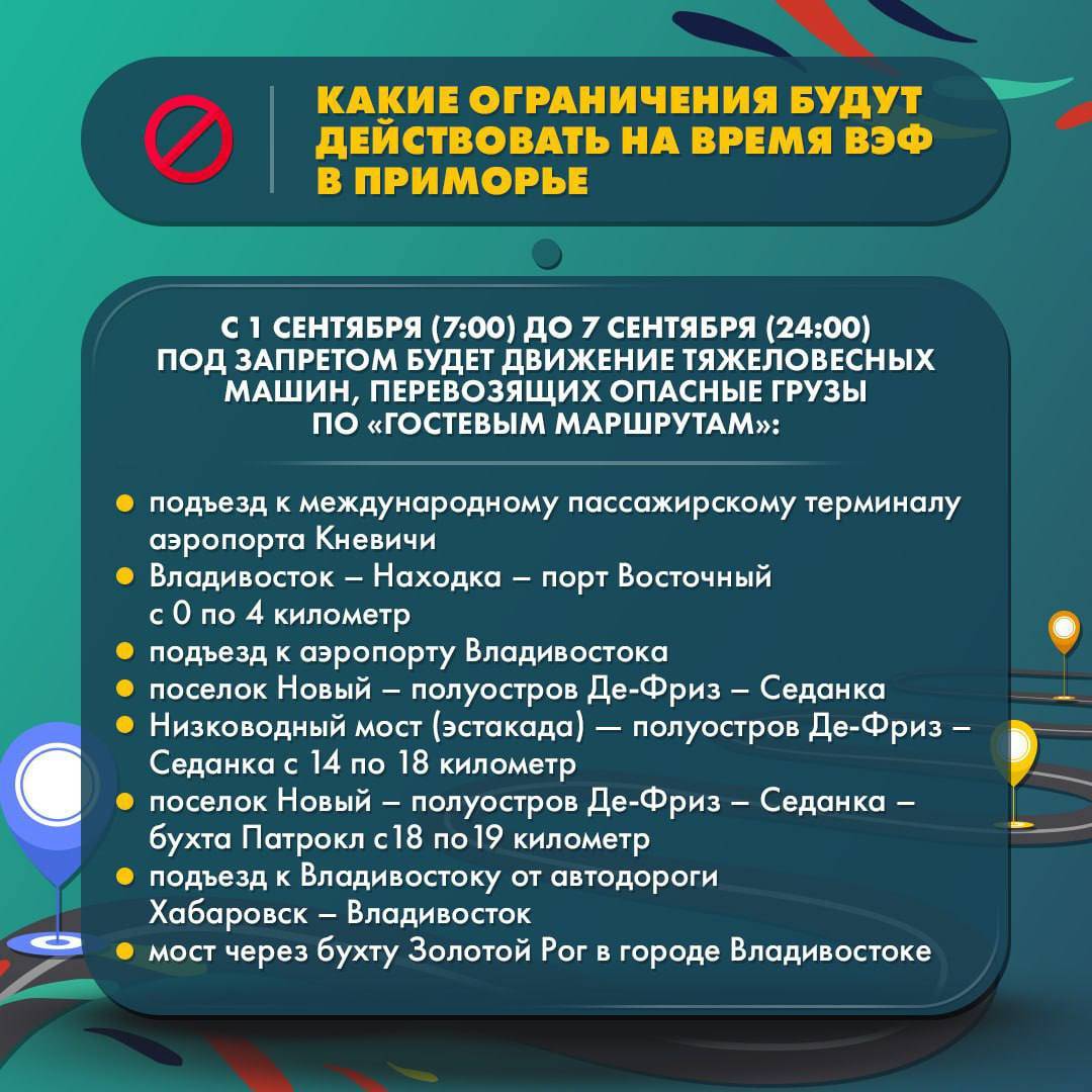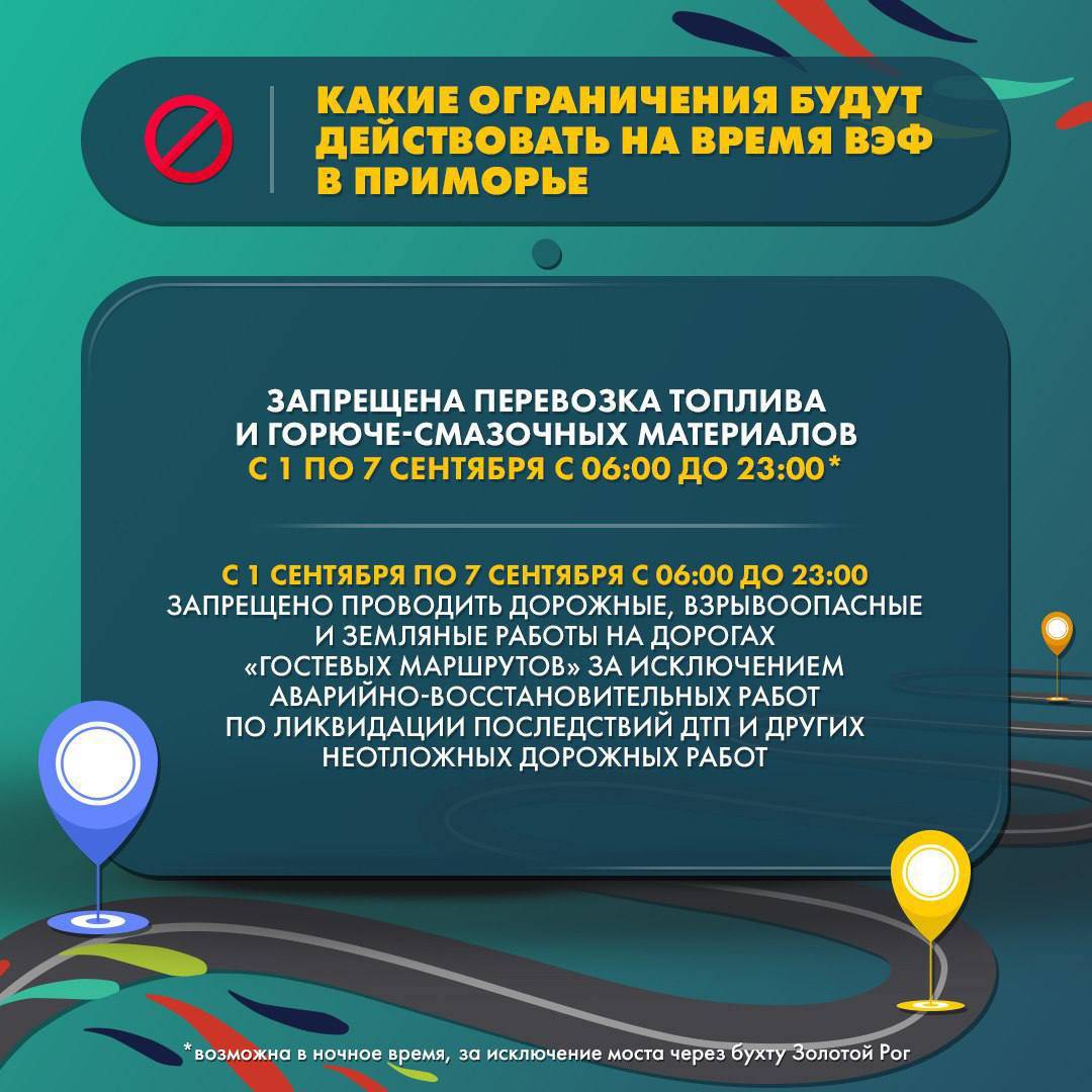 Минтранс Приморья в Сети уточняет, в период подготовки и проведения ВЭФ в Приморье не будут проводить дорожные работы на маршрутах следования гостей и участников форума, сообщают «Вести:Приморье».