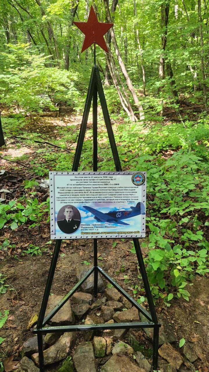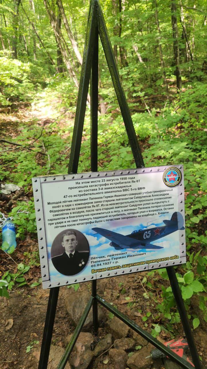 Одновременно на месте катастрофы лейтенанта Папенкова артемовским активистом, представителем Поискового объединения "АвиаПоиск" имени майора Романа Филипова", Семёном Сесёкиным вместе со старшим инженером, подполковником запаса Морской авиации ТОФ Дмитрием Александровым был установлен памятный знак с информационной табличкой и фотографией погибшего лётчика.
