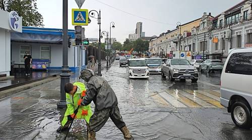 Как сообщают синоптики, в ближайшие 3-6 часов во Владивостоке ожидается очень сильный дождь, количеством 50 мм и более за 12 часов и менее.