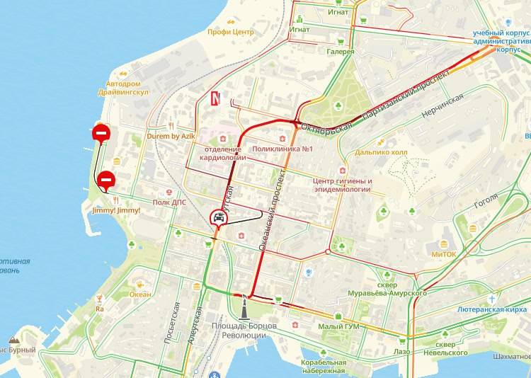Огромную пробку собрало ДТП в центре Владивостока