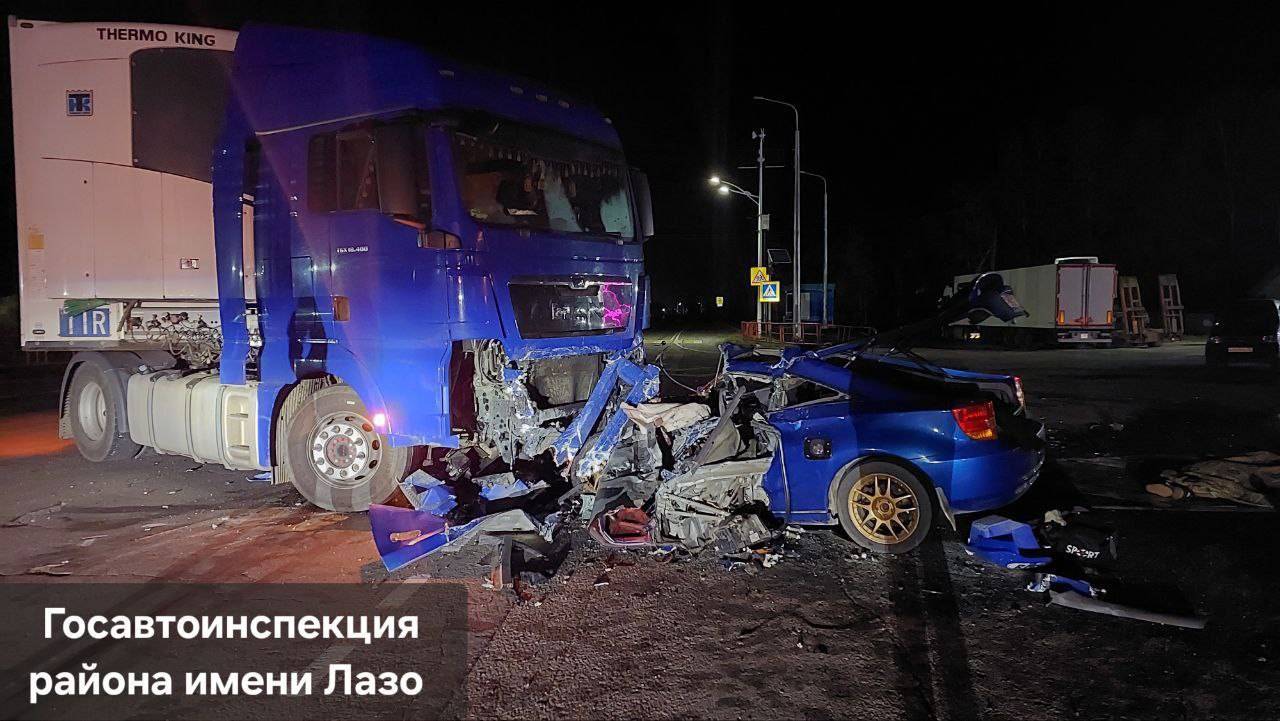 Ночью, в 0:30, в районе имени Лазо на 79-м километре трассы А-370 "Уссури" фура MAN с прицепом при повороте налево врезалась во встречный автомобиль Toyota Celica, который двигался со стороны Вяземского.