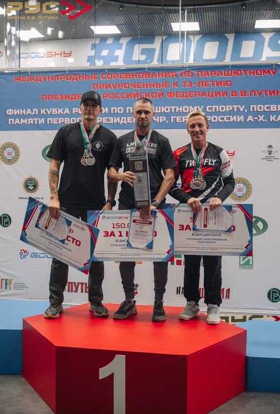 В Чеченской республике на базе Российского университета спецназа имени В.В. Путина завершились международные соревнования по парашютному спорту, приуроченные к 73-летию Президента РФ, и финал Кубка России по купольному пилотированию. Алексей Ионин, спортсмен из Владивостока, завоевал серебряную и бронзовую медали, а также золото и Кубок России в командном первенстве.