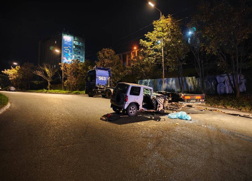 Как сообщили в пресс-службе УМВД России по Приморскому краю, предварительно установлено, что 11 октября около 00.40 54-летний водитель автомашины Mitsubishi Pajero iO, двигаясь со стороны улицы Космонавтов в направлении Сахалинской, в районе дома N 21 на улице Добровольского совершил наезд на стоящий большегруз Scania с полуприцепом.