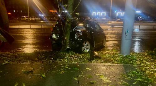 По предварительной информации, отмечает пресс-служба ведомства, 20-летний водитель автомобиля Toyota Prius, двигаясь со стороны Океанского проспекта в направлении улицы Гоголя, не справился с управлением в условиях непогоды и совершил наезд на дерево.