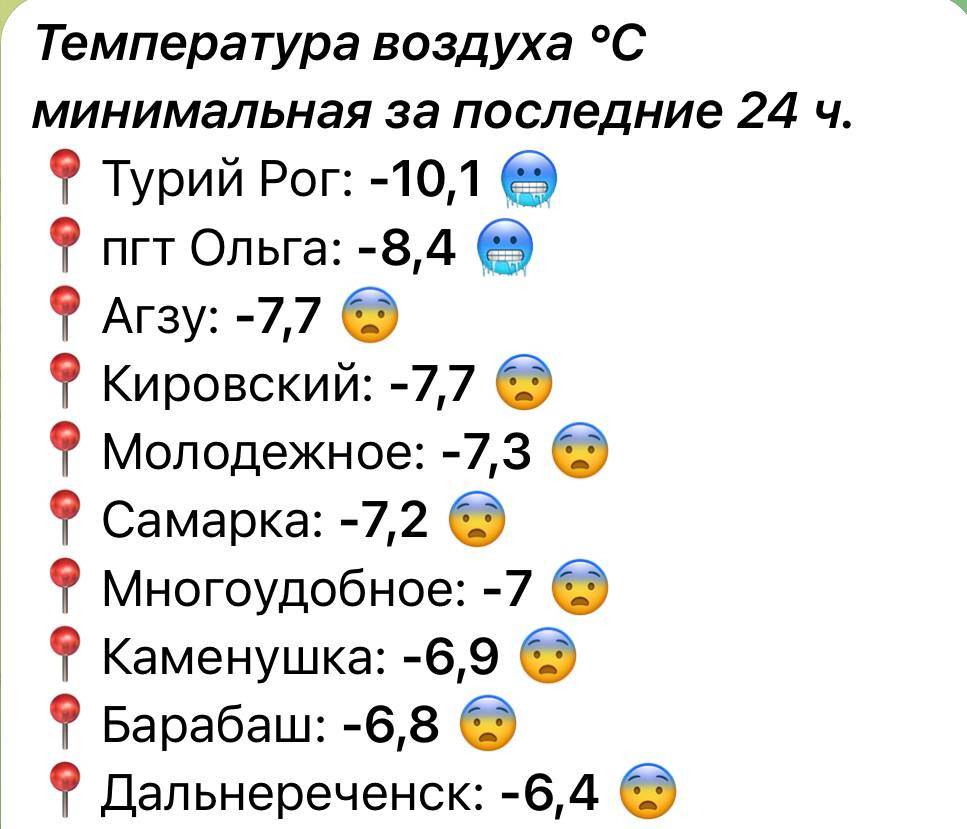 Минувшим днем в некоторых районах Приморья прошел небольшой снег. Температуры резко поползли вниз. Местами до 10 градусов мороза. На дорогах образовался гололед, - сообщает "Вести: Приморье".