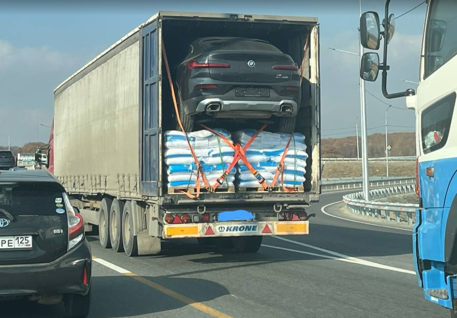 «Ехали в Уссурийск, голову ломали, как этот водитель фуры смог это сделать, ну и номер замазала, чтобы у такого креативного водителя проблем не было, он скрасил мой день)», - сообщил подписчик уссурийского блогера Марка Чернослива.