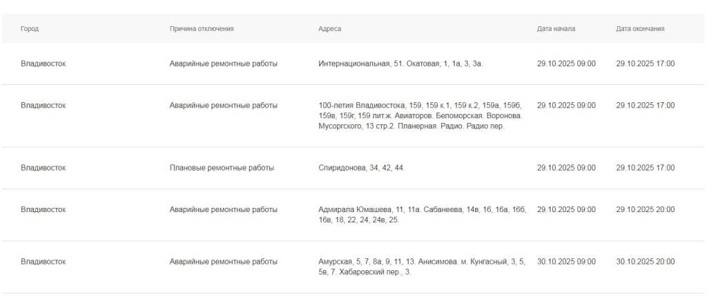 Аварийные отключения холодной воды пройдут во Владивостоке