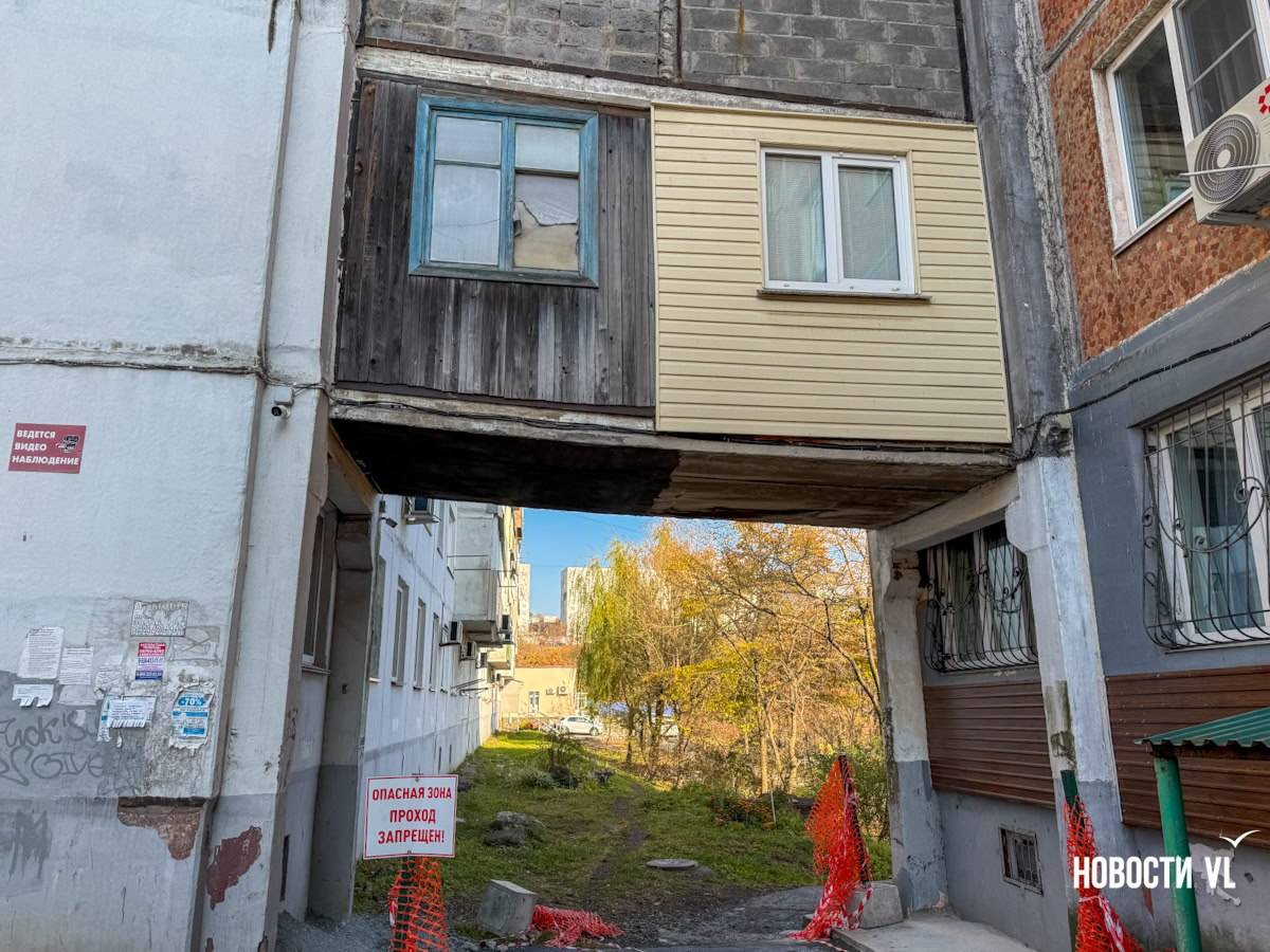 Пристройка с балконами между двумя домами, расположенными на улице Тихой, просела из-за утяжеляющих ее плит и блоков, сообщают «Вести:Приморье».