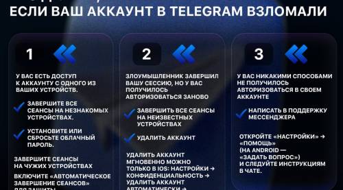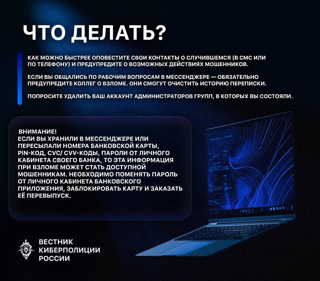 В управлении по организации борьбы с противоправным использованием информационно-коммуникационных технологий МВД РФ дали рекомендации, что делать если взломали Telegram, WhatsApp и Мах.