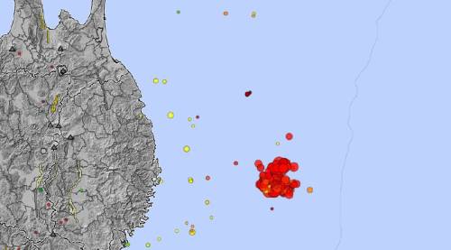Ранее сообщалось, что сильные толчки силой от 5 до 7 баллов один за другим происходят у побережья Японии. Возможно землетрясение. Сейчас толчки продолжаются...