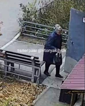 В поле камеры попала пожилая женщина, которая таким образом решила просто избавиться от накопленного ею мусора. Она принесла его в пакете и поставила рядом с урной.