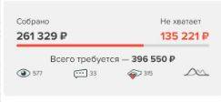 Стоимость лечения — без малого 400 тысяч, благодаря помощи неравнодушных людей собрано уже более 250 тысяч рублей, осталось набрать 135221 рублей.