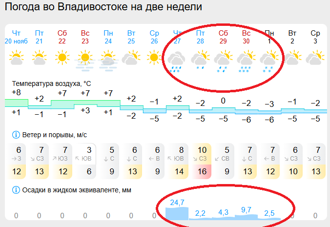 А 27 и 28 ноября возможна опасная погода", - пишет известный приморский метеоблогер.