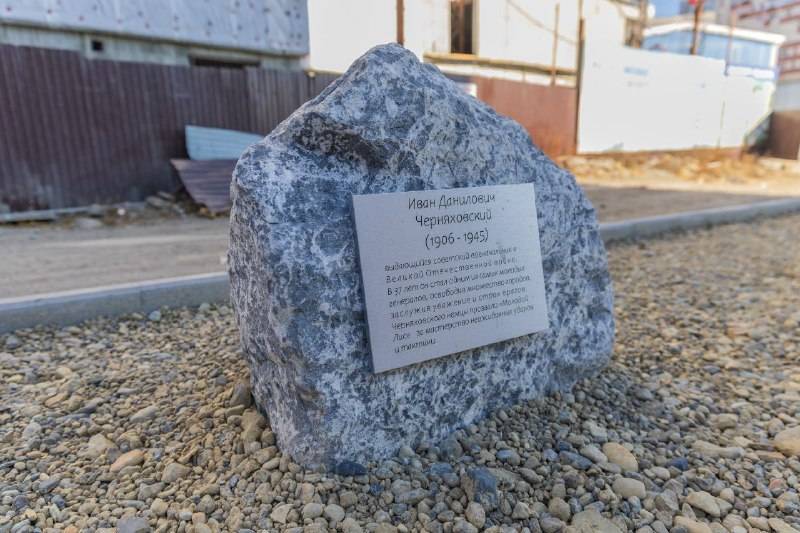 На территории установили лавочки, провели работы по благоустройству, а также установили памятный камень в честь дважды Героя Советского Союза, генерала Ивана Черняховского, имя которого и носит улица.