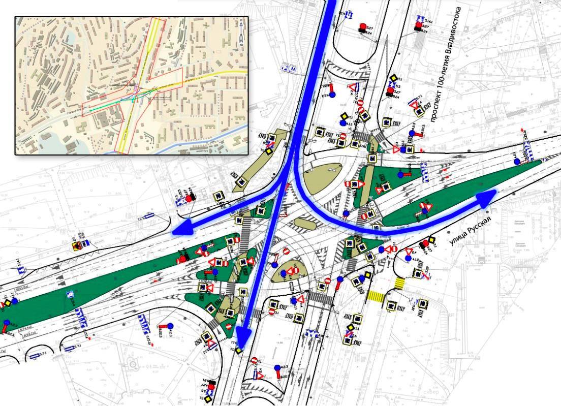 Дополнительно при движении по проспекту 100 лет Владивостока перед перекрестком обустраиваются полосы для разворота.