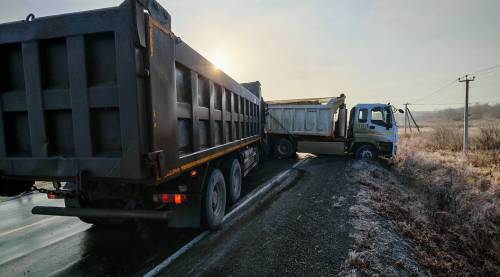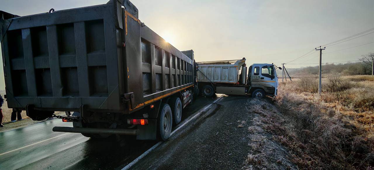 Предварительно установлено, уточняет пресс-служба полиции Приморья, что в результате столкновения двух грузовых автомашин оказалась полностью перекрыта одна полоса для движения.