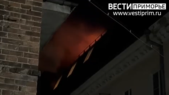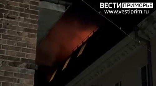Мансарда здания полыхает в самом центре Владивостока
