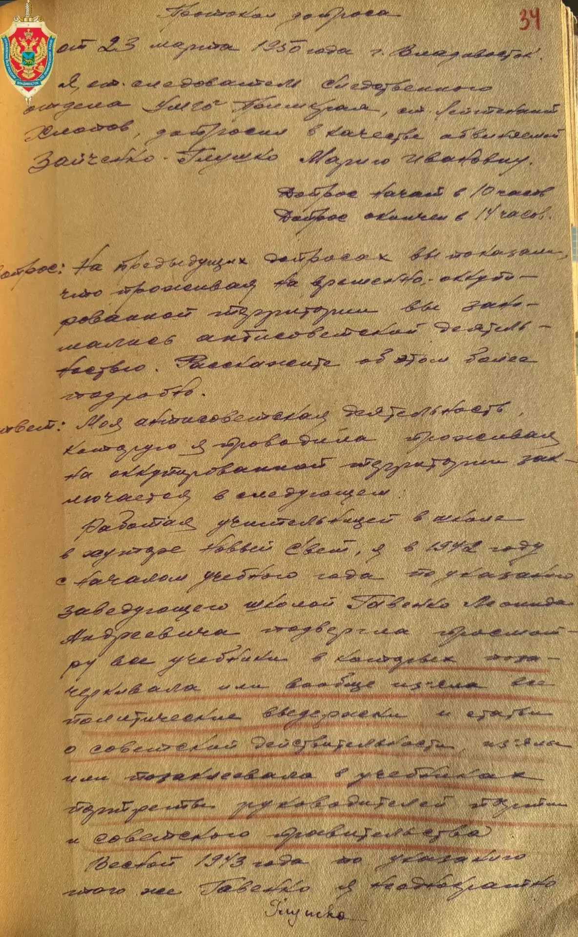 Протокол допроса Зайченко-Глушко М.И. от 23 марта 1950 года: