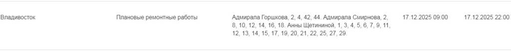 Локальное отключение холодной воды запланировано во Владивостоке (адреса)
