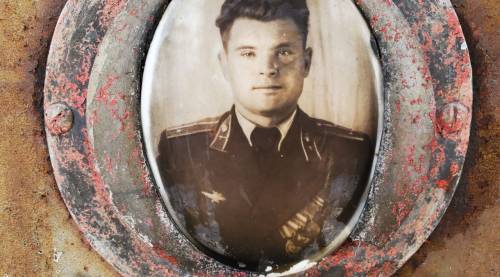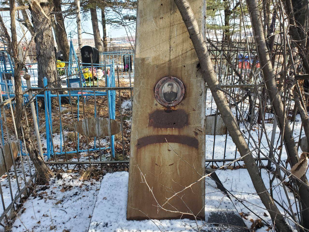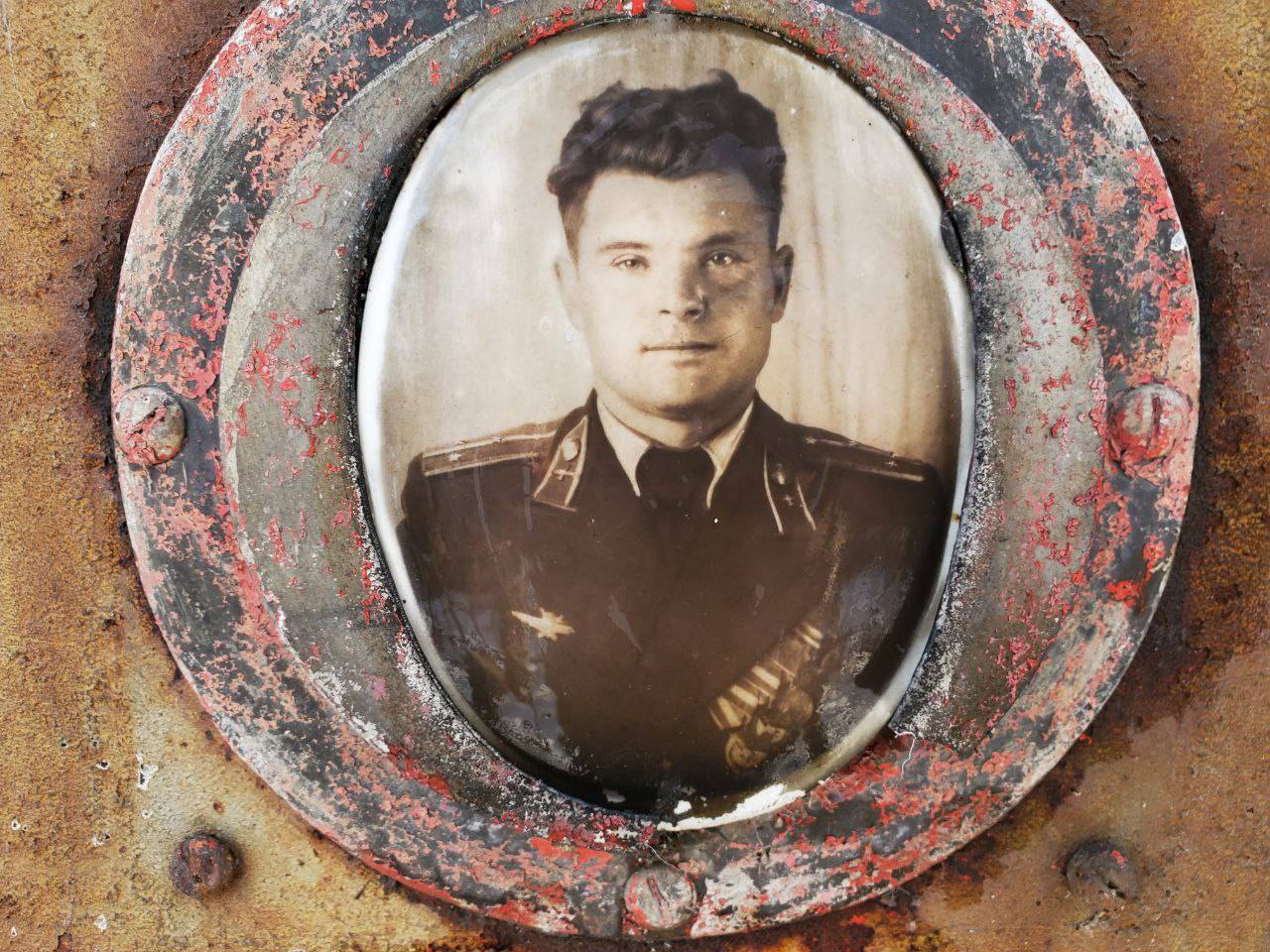 С уцелевшей фотографии на памятнике смотрит, слегка улыбаясь, молодой офицер Военно-воздушных сил СССР. И, вроде бы таких лётчиков в военной форме можно увидеть здесь на многих надгробьях, но обращает на себя внимание солидный "иконостас" из наград на груди, а глаз цепляется за два ордена "Боевого Красного Знамени". Учитывая, что захоронение одиночное, становится ясно, что это лётчик-истребитель из состава 523-го ИАП, который базировался в Воздвиженке.