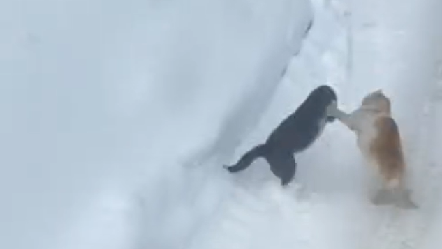 Свидетелем «ристалища» стал водитель снегоуборочной машины. Мужчина попытался разнять дерущихся, припугнув их, но это оказалось не так-то просто.