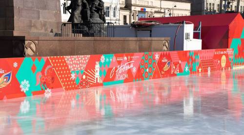 Здесь пройдут дружеские хоккейные матчи, мастер-классы и ледовые представления. Для удобства зрителей рядом установлены трибуны.