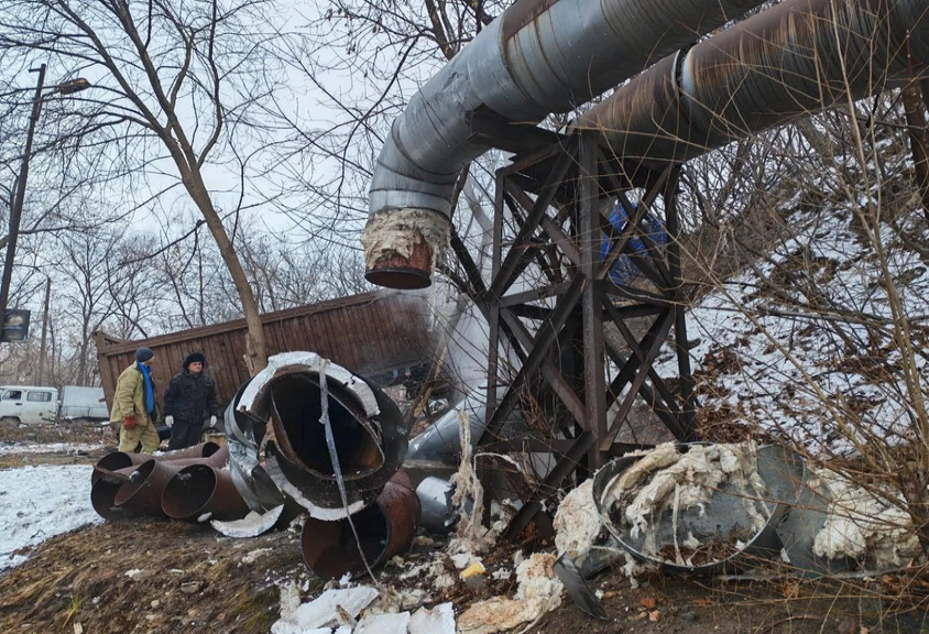 Напомним, причиной аварии стало ДТП. Фура протаранила тепломагистраль возле ТЦ "Находка Мега".