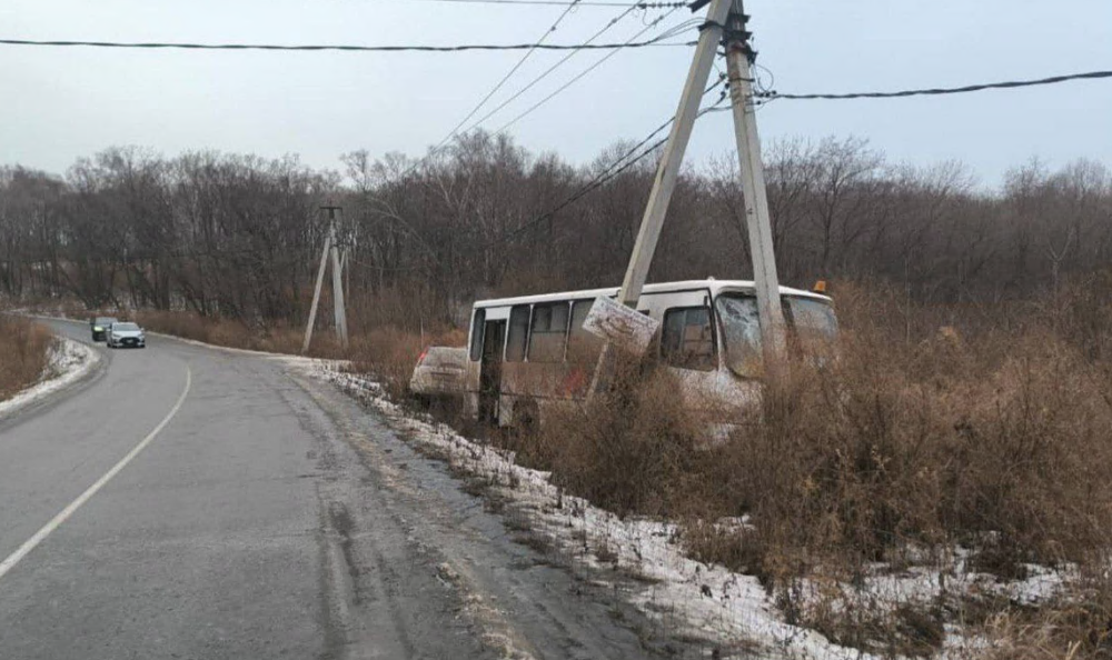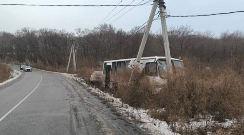 В Приморье пассажирский автобус столкнулся в опорой ЛЭП