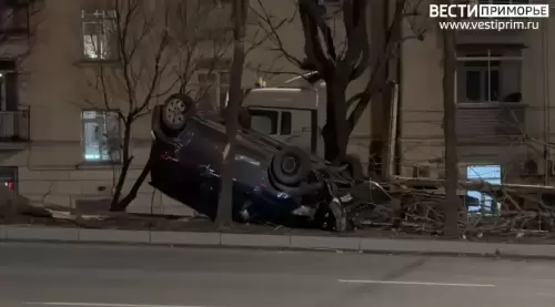 Автомобиль съехал с трассы и перевернулся во Владивостоке