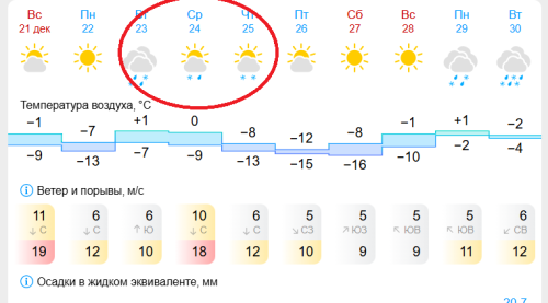 А с 23 декабря ожидается резкое серьезное ухудшение погоды. По краю ожидается снег, мокрый снег, снег с дождем, налипание снега на проводах и деревьях, гололед.