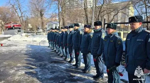 Во Владивостоке состоялась торжественная церемония, посвящённая памяти пожарного, отдавшего жизнь при исполнении служебного долга. Мероприятие прошло на территории пожарно‑спасательной части №4, где собрались сотрудники МЧС России, ветераны службы и родственники.